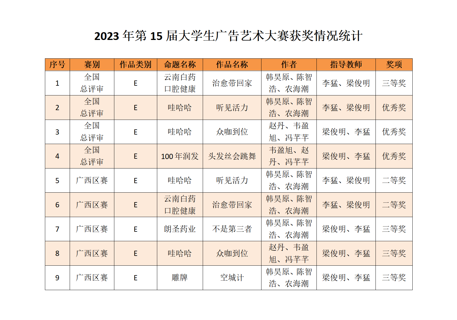 据悉,在7月结束的2023年第15届大学生广告艺术大赛广西赛区评审中,我院学子获二等奖2项、三等奖3项。