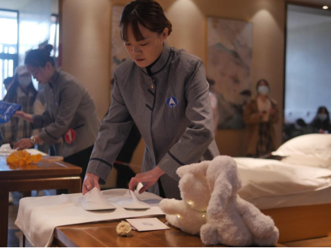 “创意夜床”环节依然是大赛的亮点。本届选手们的创意主题更加丰富多彩,“缤纷秋日”、 “航空航天”、“水墨山水”、“甜蜜情人节”、“生日祝福”……精心且别出心裁的夜床布置,充分体现了选手们的聪明才智。