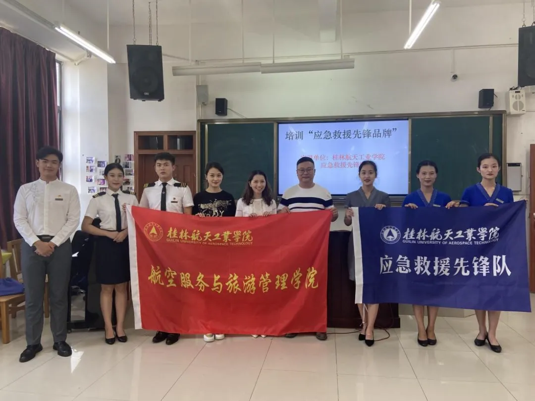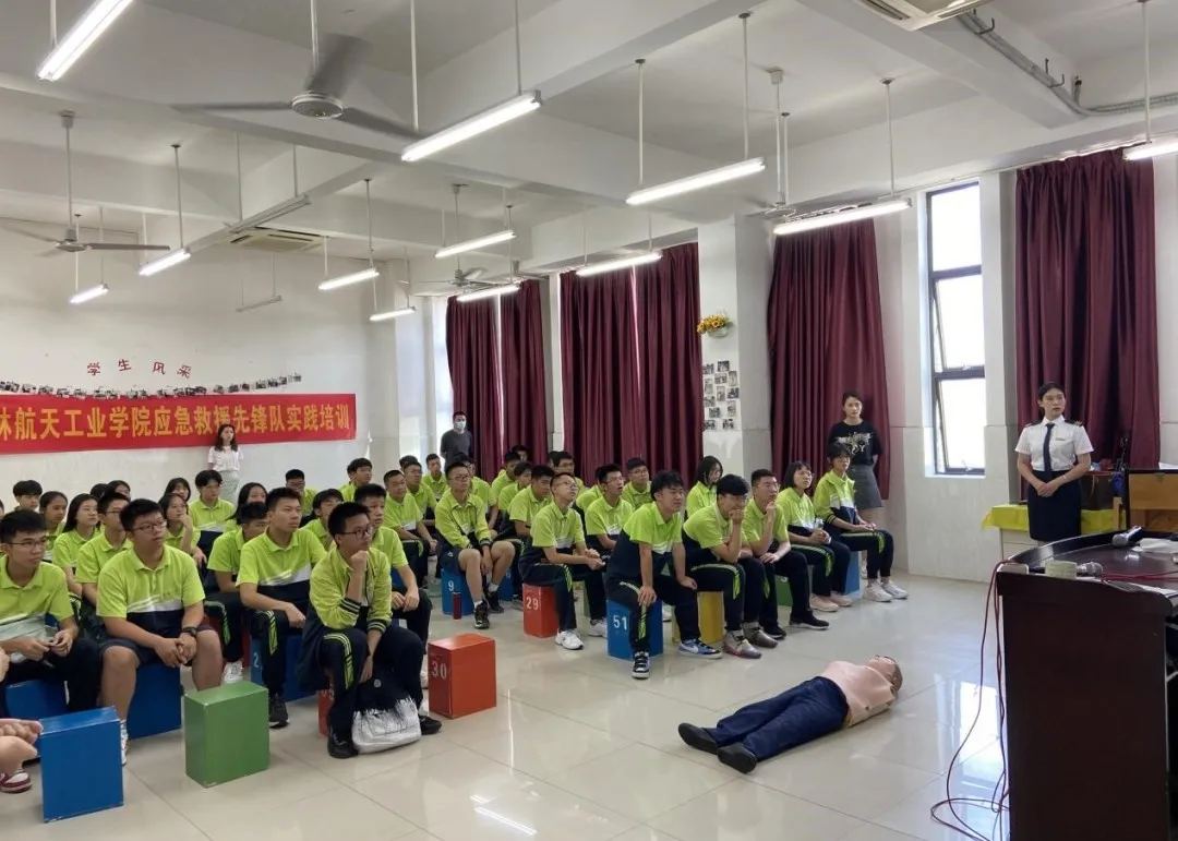 在此背景下, 桂林航天工业学院航空服务与旅游管理学院“应急救援先锋队”应运而生,团队充分发挥了队员们在专业学习中习得的心肺复苏、止血、包扎等知识和技巧,通过现场教学和互联网传播,来达到向公众培训急救知识的目的,现已开展多场现场教育,取得了积极效果。
