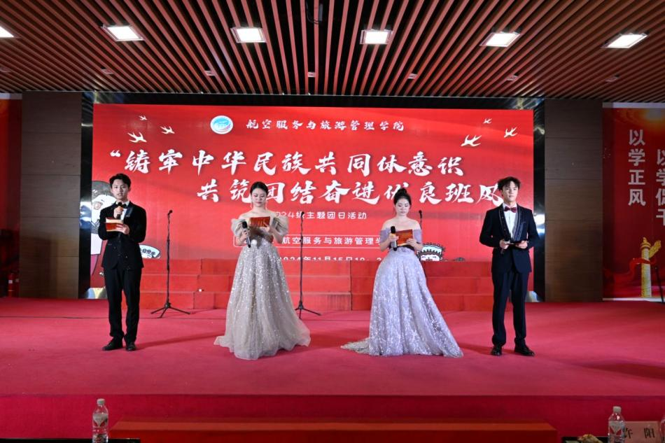 2024年11月15日晚,航空服务与旅游管理学院2024级各团支部以“铸牢中华民族共同体意识,共筑团结奋进优良班风”为主题的团日活动在招聘大厅圆满结束。学院党委副书记唐珉出席本次活动。