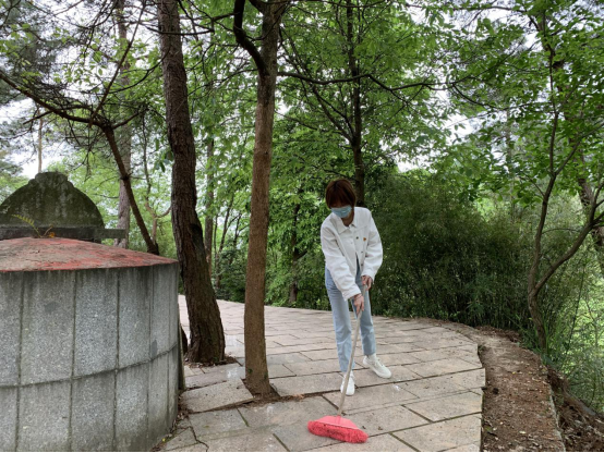 党员同志清扫烈士墓碑