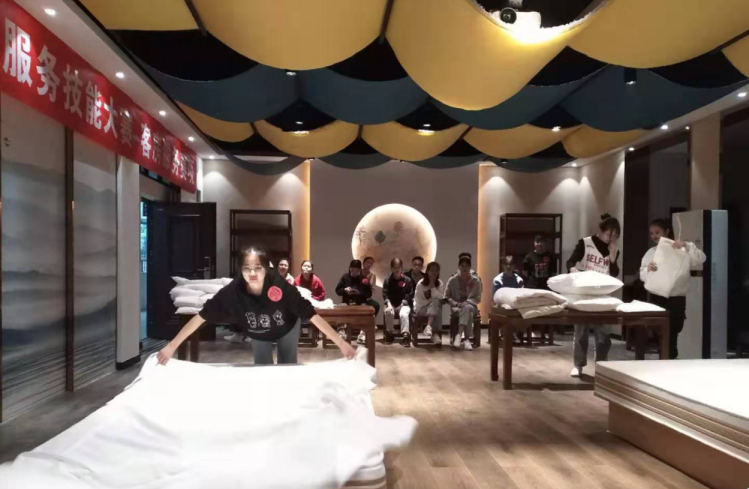 酒店技能大赛期间,今年作为启动年,指导老师手把手的教学生如何适应国赛标准,打造国赛质量。