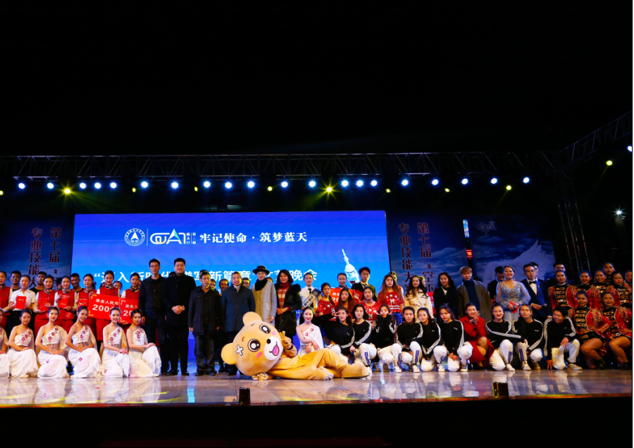 2017年12月18日晚,由桂林航天工业学院党委宣传部、校团委主办,我院承办的第三届航天日“迈入新时代 谱写新篇章”文艺晚会暨第七届空乘之星专业技能大赛在北校区青春广场隆重举行。我校副校长杨杰,以及来自桂林市多个职能部门领导、航空公司领导、区内外兄弟院校、合作单位代表等嘉宾、评委和师生们一同观看了本次晚会。