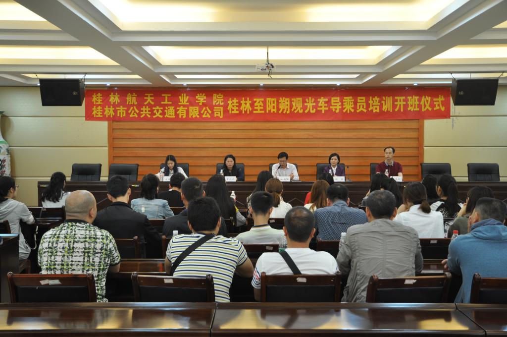 为了更好地服务桂林国际旅游胜地建设,深化产教融合,我院受桂林市公共交通有限公司委托开办桂林至阳朔观光车导乘员培训班正式开班。4月20日上午在飞天楼五楼520会议室举行了开班仪式。